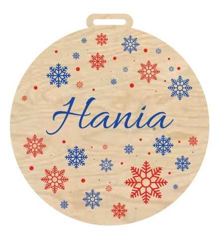 Bombka wykonana ze sklejki ozdobiona świątecznym motywem w technologii wysokiej jakości druku UV. Bombka może też pełnić funkcję bileciku prezentowego. Osobistego charakteru nadaje personalizacja w postaci umieszczonego na bombce imienia. Płaski otworek pozwoli na zawieszenie bombki także na wstążce.