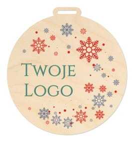 Bombka wykonana ze sklejki ozdobiona świątecznym motywem w technologii wysokiej jakości druku UV. Oprócz świątecznej grafiki na bombce umieścimy Twoje logo lub nazwę firmy. Płaski otworek pozwoli na zawieszenie bombki także na wstążce.