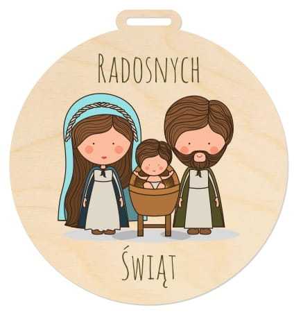 Bombka wykonana ze sklejki ozdobiona świątecznym motywem w technologii wysokiej jakości druku UV. Bombka może też pełnić funkcję bileciku prezentowego. Płaski otworek pozwoli na zawieszenie bombki także na wstążce.
