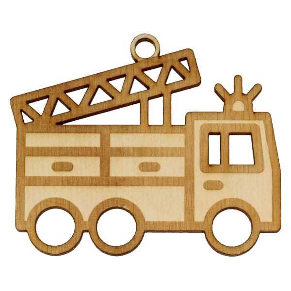 Dekor ze sklejki przedstawiający wóz strażacki.