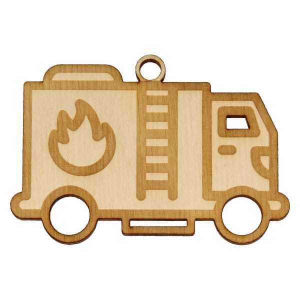 Dekor ze sklejki przedstawiający wóz strażacki.