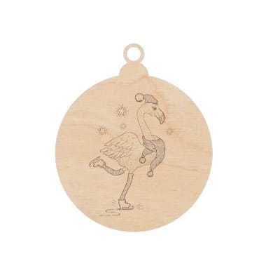 Bombka wykonana ze sklejki ozdobiona grawerowanym świątecznym motywem.