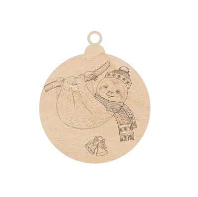 Bombka wykonana ze sklejki ozdobiona grawerowanym świątecznym motywem.