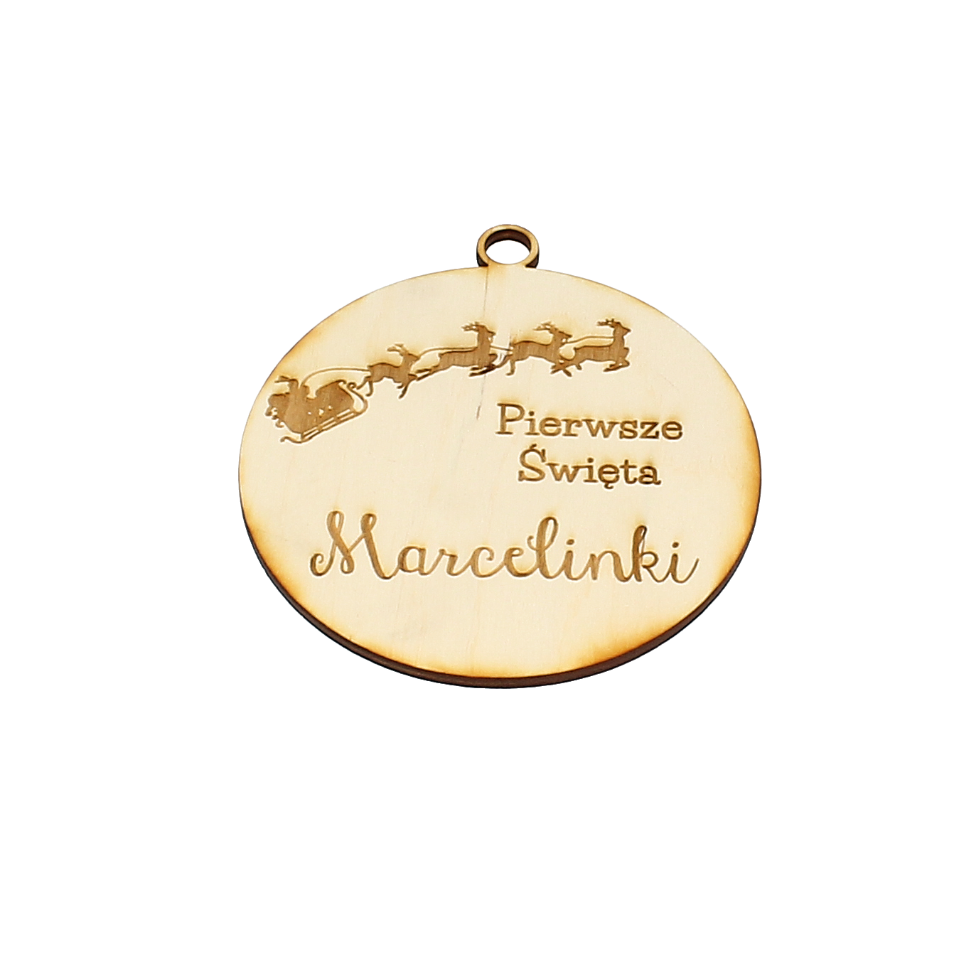 DG013 Bombka z Twoim imieniem grawerowana Mikołaj w saniach