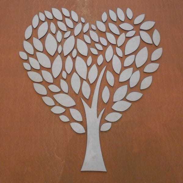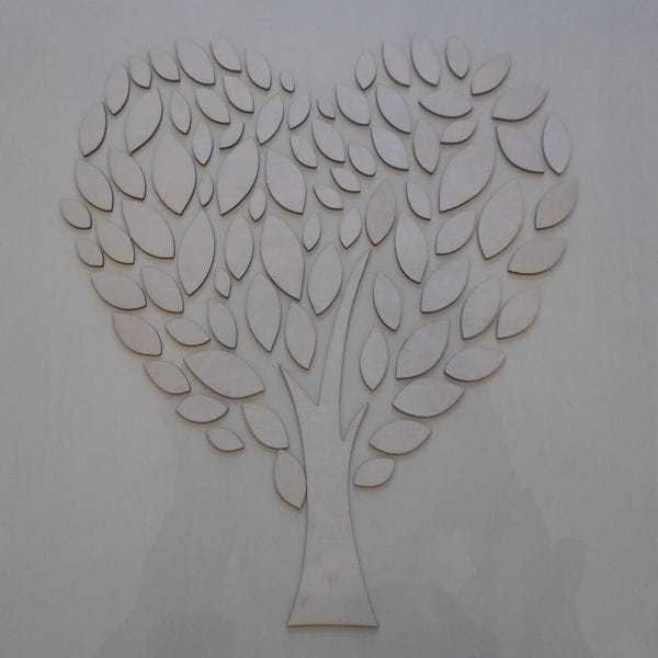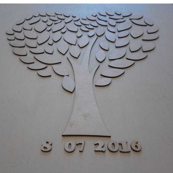 Drzewo - księga gości wykonane ze sklejki brzozowej o grubości 3 mm. Do drzewka dołączone są listki w różnych rozmiarach w sumie 89 sztuk.