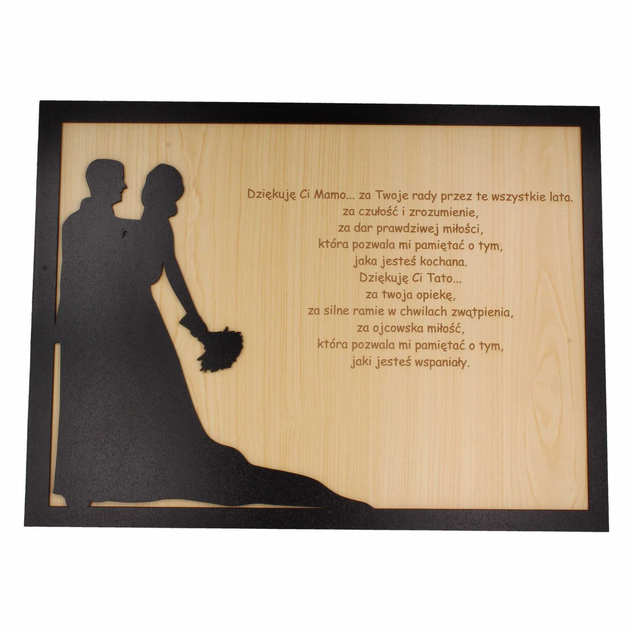 Podziękowania dla rodziców i nie tylko wykonane z hdf'u lakierowanego.