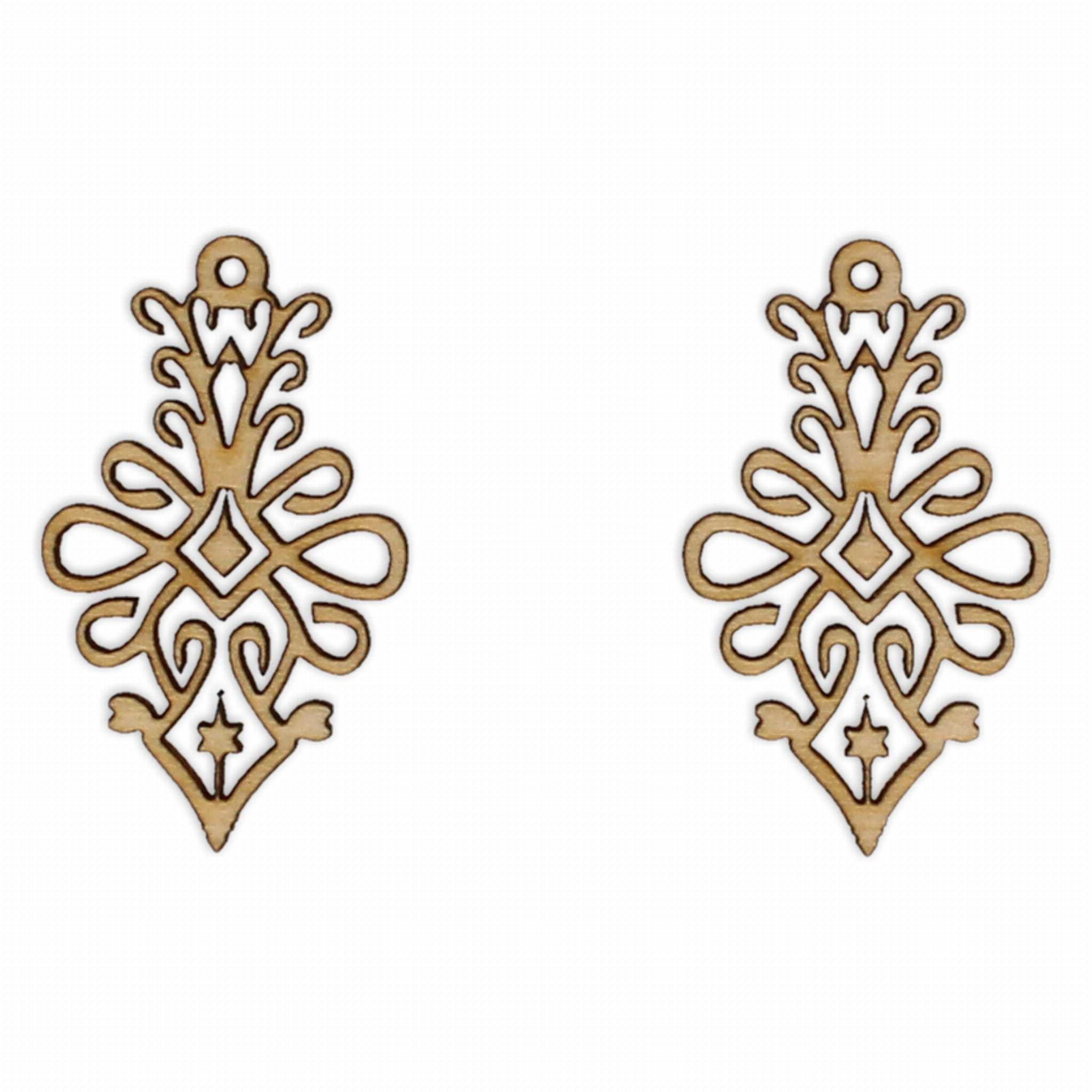 Ozdobne kolczyki wykonane ze sklejki - wzór podhalański.