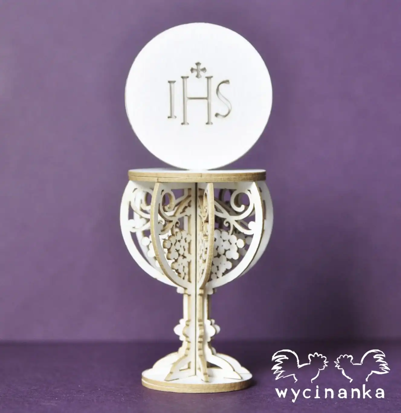 Kielich z hostią do samodzielnego złożenia i sklejenia, wykonany z tekturki o grubości 1 mm.