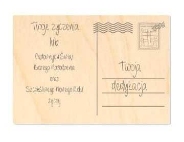 Święta są czasem, w którym wszyscy bliscy składają sobie najszczersze życzenia. Każdy z nas jednak chciałby być w pewien sposób oryginalny i nietuzinkowy. Drewniana grawerowana kartka z personalizowanymi życzeniami świątecznymi będzie tym, czego szukasz. Po zakupie poprosimy o podanie Twoich własnych życzeń, które znajdą się na tyle kartki. Będziesz mógł w ten sposób wyrazić samego siebie i zadziwić swoich najbliższych interesującym prezentem świątecznym.