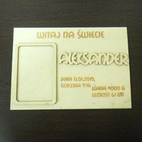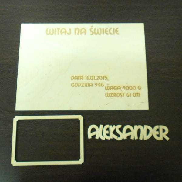 Imię dziecka oraz dane data/waga/wzrost/godzina dostosowane do potrzeb klienta.