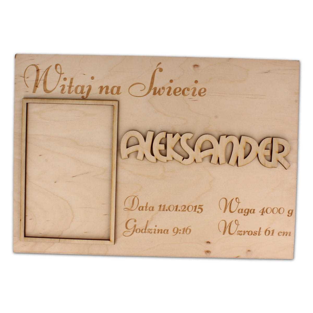 Imię dziecka oraz dane data/waga/wzrost/godzina dostosowane do potrzeb klienta.