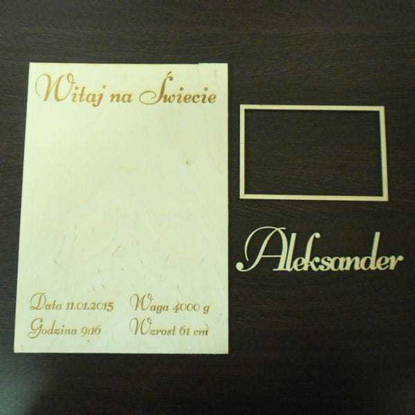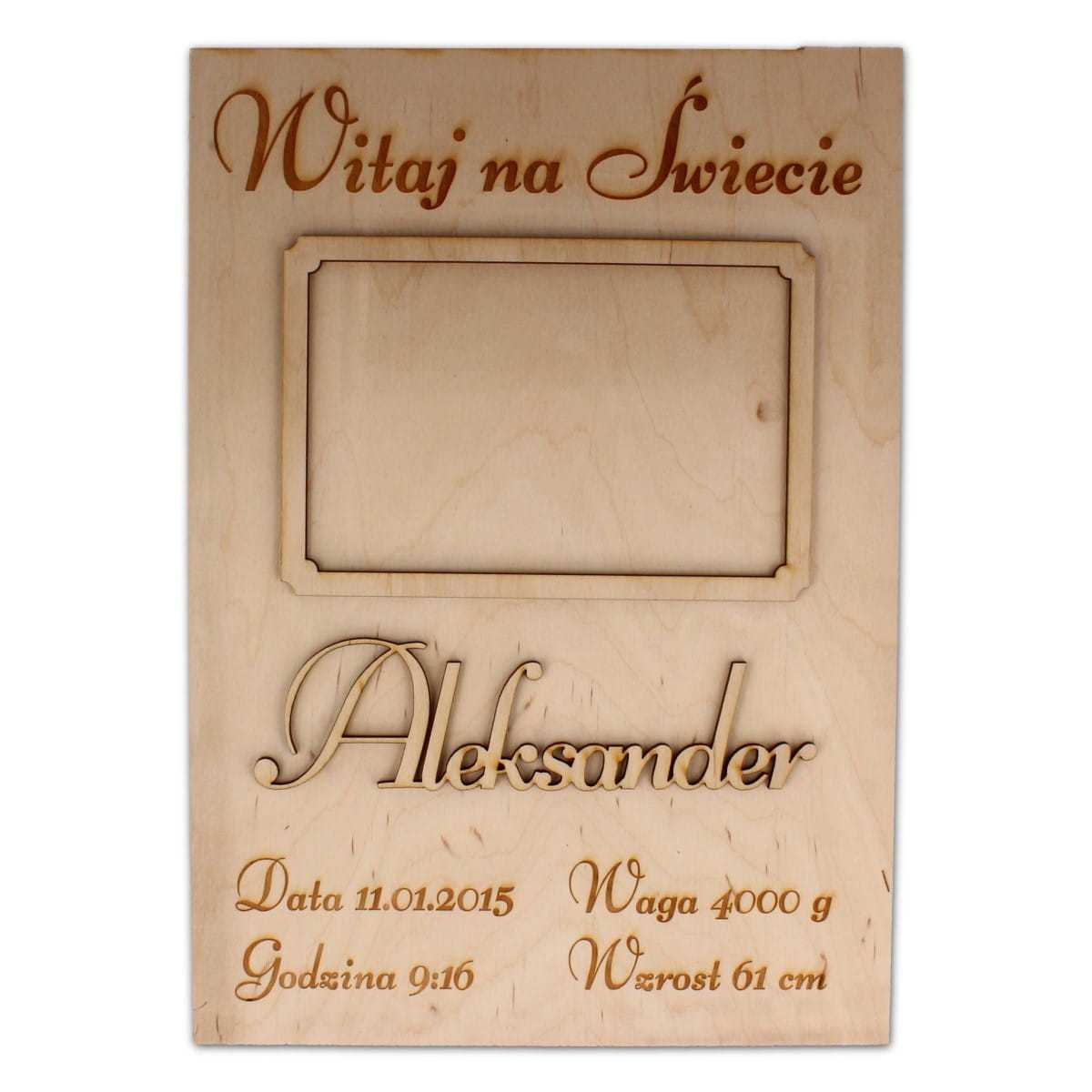 Imię dziecka oraz dane data/waga/wzrost/godzina dostosowane do potrzeb klienta.