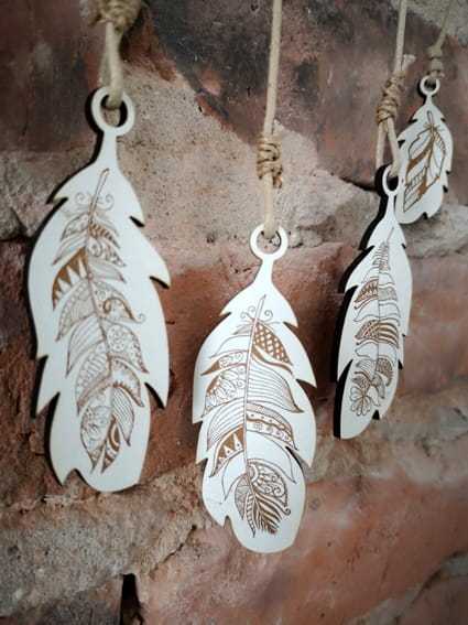 Cena dotyczy zestawu: okrągła metryczka + 5 piórek. Zestaw nie zawiera sznurków. Do samodzielnego montażu.