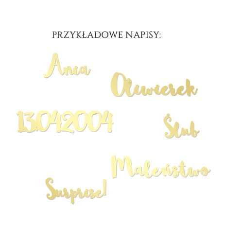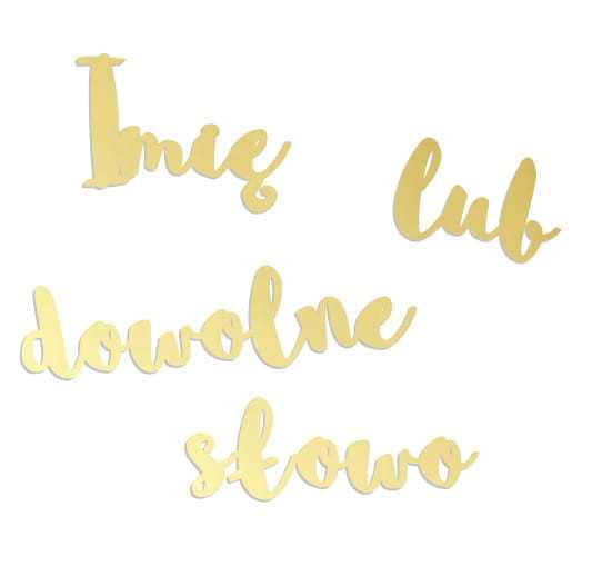 Napis personalizowany wykonany ze złotej lustrzanej plexi (szkło akrylowe).