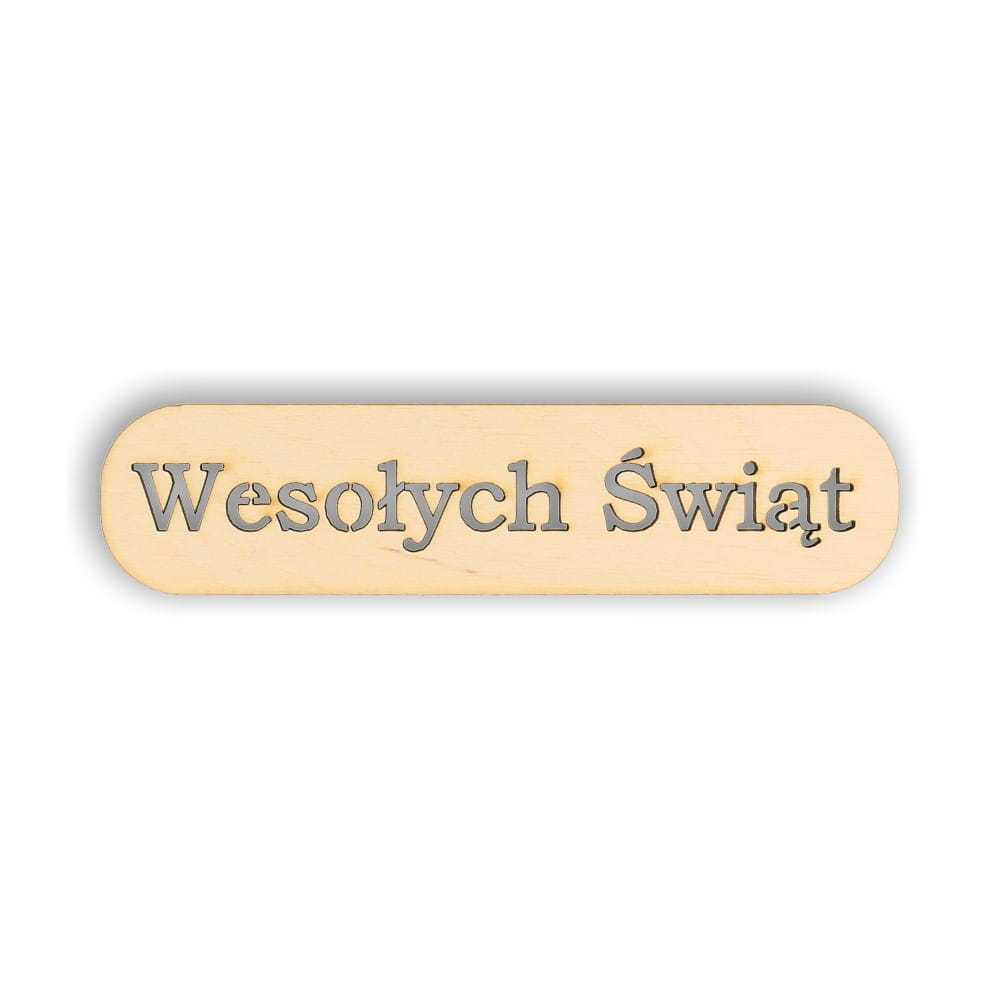 Napis Wesołych Świąt wpisany w tabliczkę do decoupage wykonany ze sklejki brzozowej