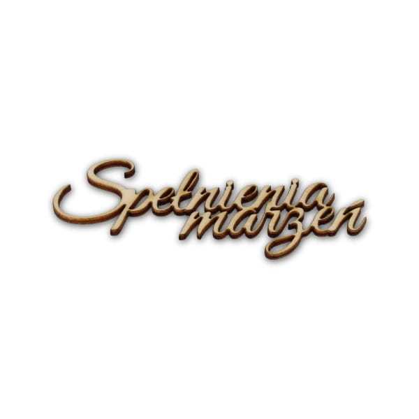 Napis "Spełnienia marzeń" wykonany ze sklejki.