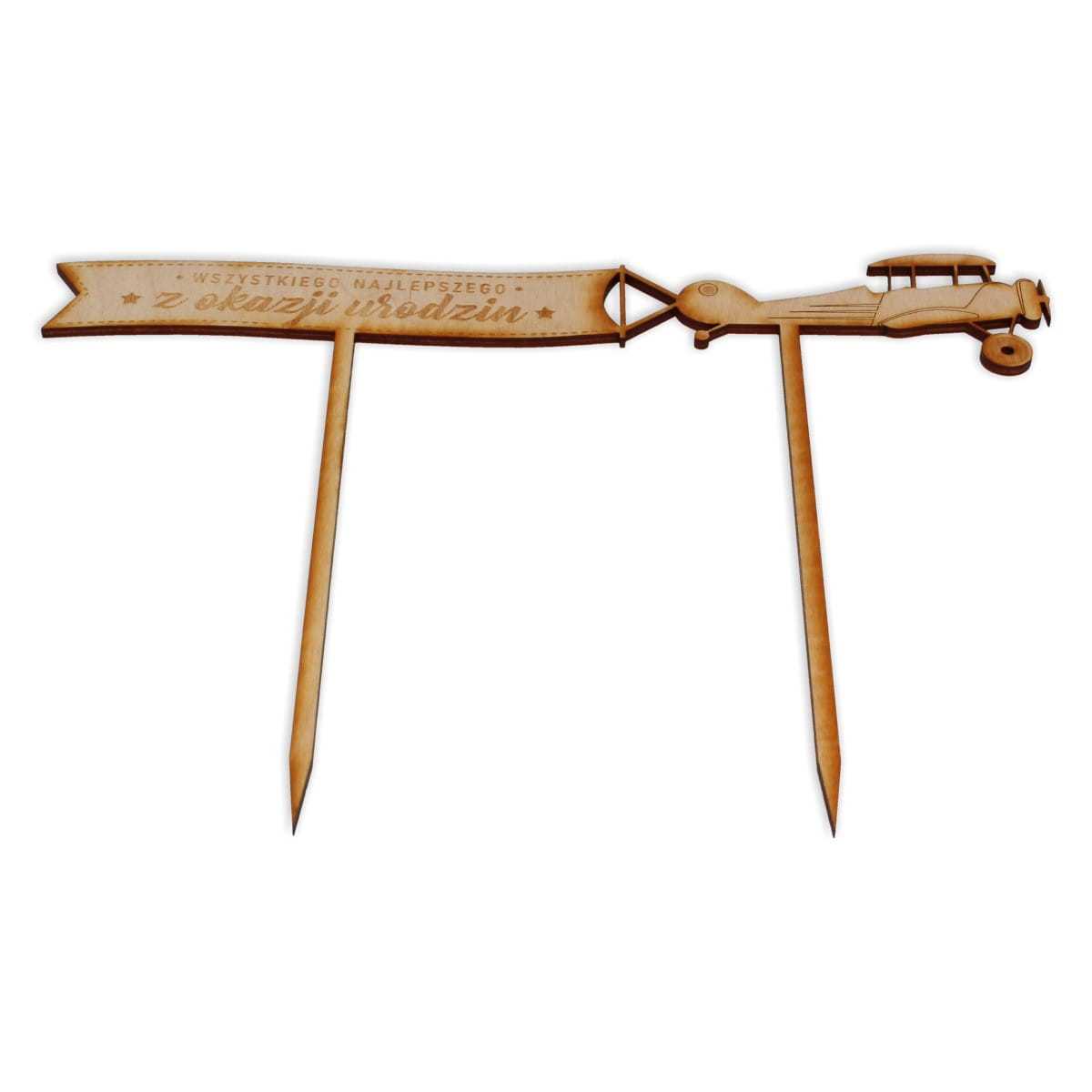 Ciekawa ozdoba urodzinowego tortu dla każdego małego miłośnika samolotów. Topper wykonany ze sklejki o grubości 3mm. Cena dotyczy jednej sztuki.
