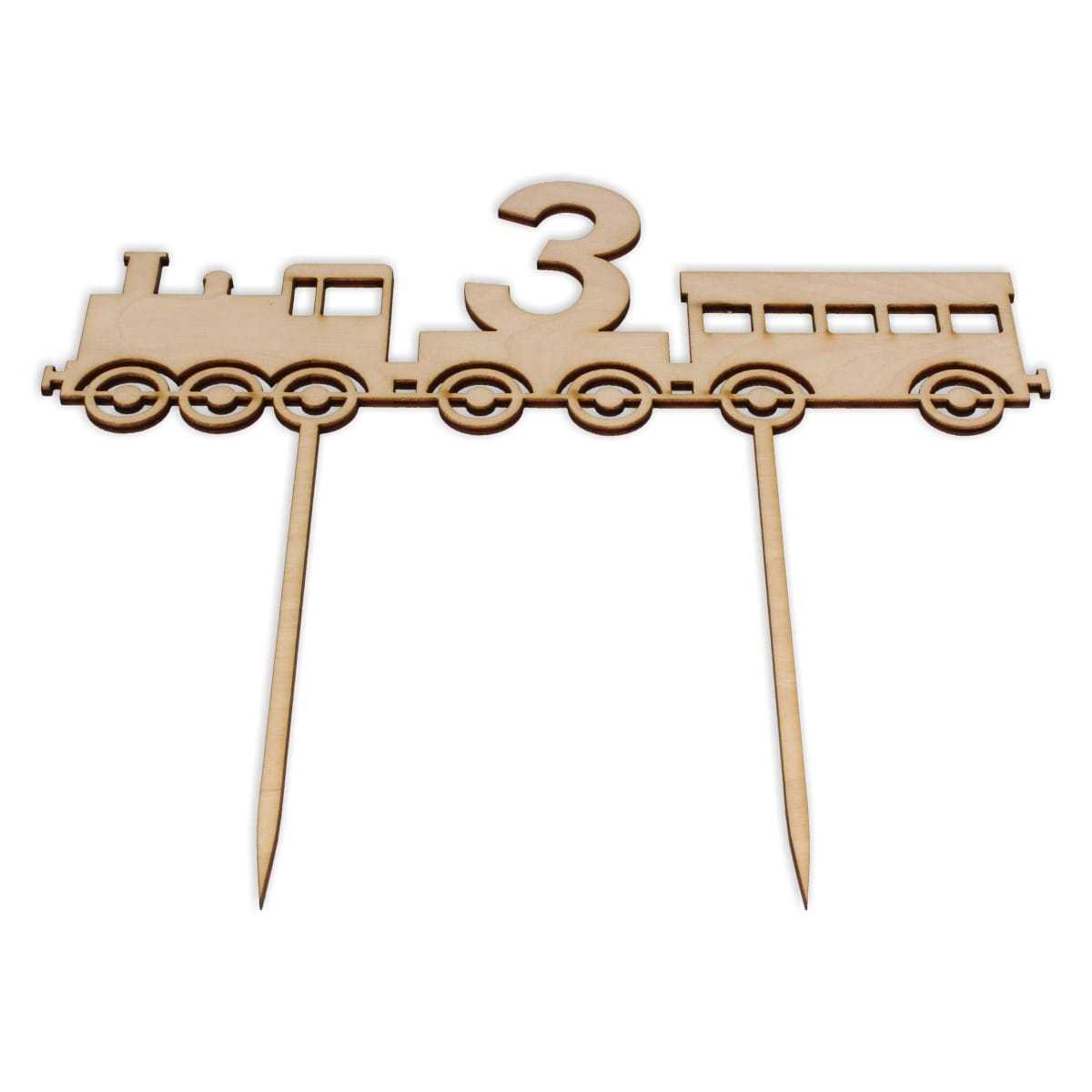 Drewniany topper urodzinowy przedstawiający ciuchcię z wagonami. Cyfrę w wagoniku możemy zmienić zgodnie z życzeniem klienta. Topper wykonany ze sklejki o grubości 3mm. Cena dotyczy jednej sztuki.