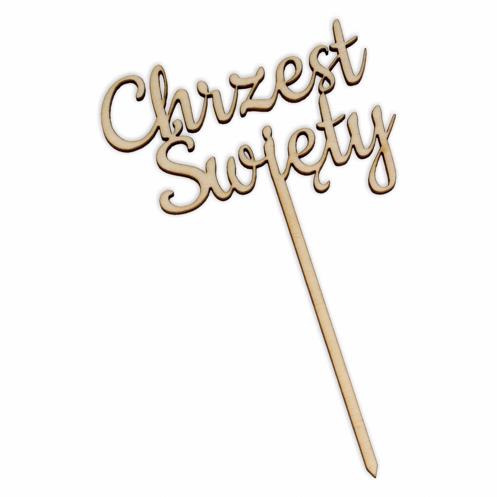 Topper ze sklejki ozdobi tort przygotowany na Chrzest Święty.