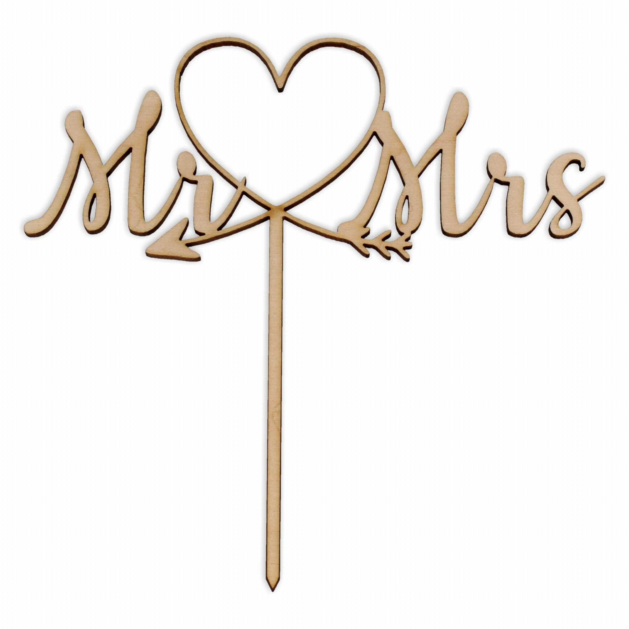Topper ze sklejki ozdobi tort lub bukiet dla nowożeńców.