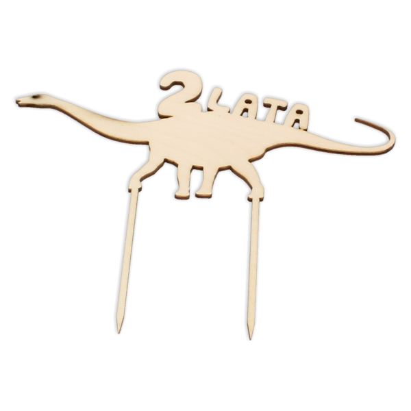 Topper przedstawiający diplodoka to idealny dodatek do tortu urodzinowego dla każdego małego miłośnika dinozaurów. Na życzenie klienta możemy zmienić cyfrę wskazującą wiek dziecka. Topper wykonany jest z surowego drewna i nadaje się do zdobienia różnymi technikami. Cena dotyczy jednej sztuki.