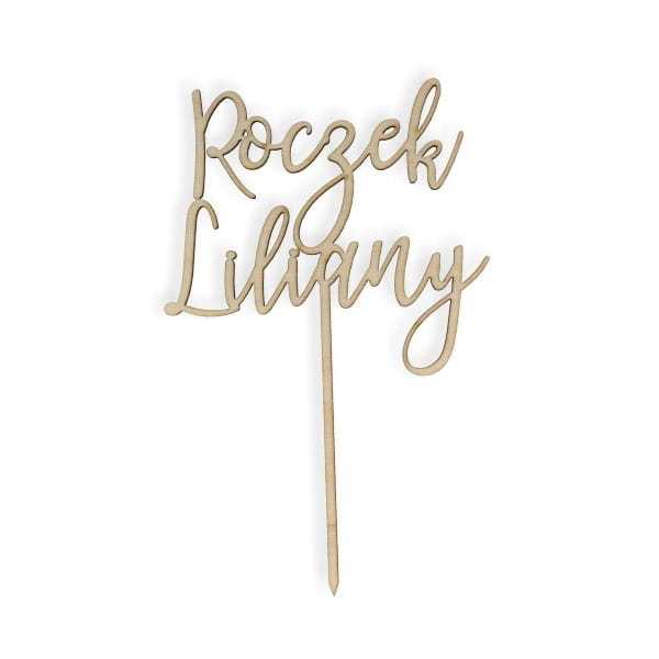 Elegancki topper na roczek z imieniem dziecka może być pomalowany samodzielnie na dowolny kolor lub użyty bez malowania.
