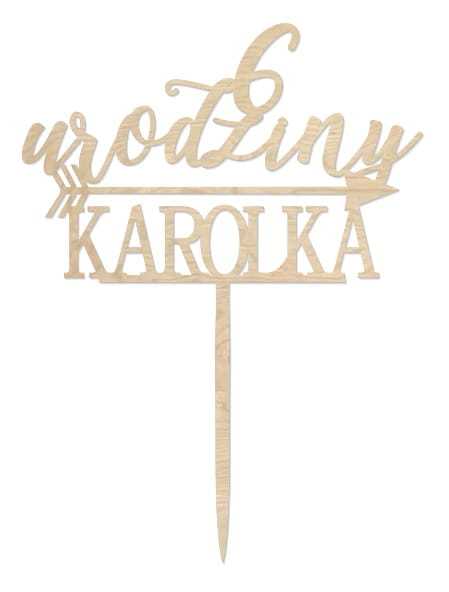 Drewniany topper ze strzałą będzie doskonały na różne okazje. Oprócz imienia możesz podać także własną okazję, np. imieniny, Chrzest Św., roczek, wieczór panieński/kawalerski itp.