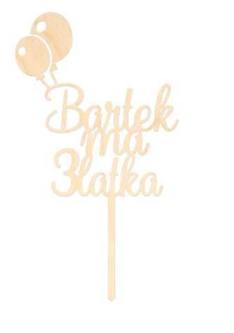 Drewniany topper z balonikami będzie doskonały na urodziny, ale też różne inne okazje. Oprócz imienia możesz podać także wiek lub wybrać swój tekst (pamiętając o ograniczeniu ilości tekstu).