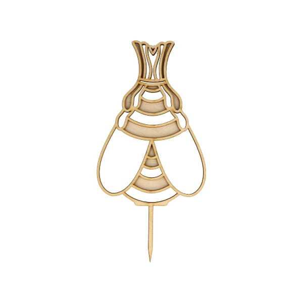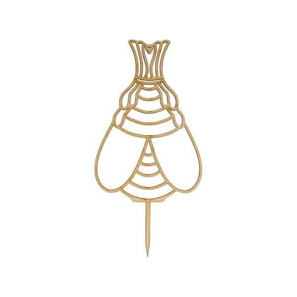 Topper ze sklejki w formie sukni śubnej stanowi oryginalną ozdobę weselnego tortu. Możesz stworzyć dekorację warstwową, łącząc go z topperem OP342 (połączenie widać na drugim zdjęciu).