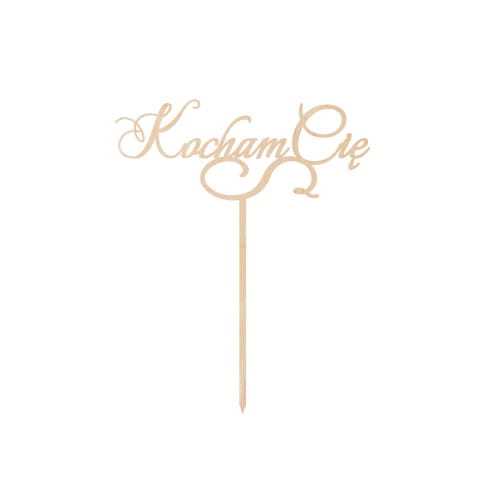 Topper ze sklejki z napisem "Kocham Cię" uzupełni tort, kosz prezentowy lub bukiet kwiatów.
