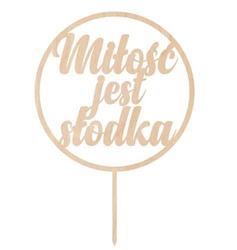 Topper ślubny ze sklejki uzupełni tort, kosz prezentowy lub bukiet kwiatów.