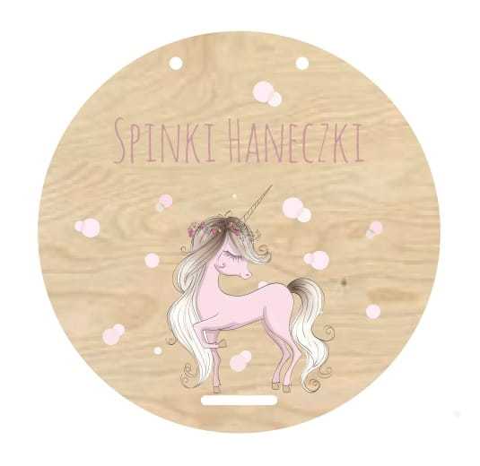 Baza organizera na spinki wykonana ze sklejki z kolorowym nadrukiem. Personalizacja w postaci imienia dziecka. Wystarczy przewiązać wstążkę w ulubionym kolorze, do której będą mocowane spinki, aby w drobiazgach dziecka zapanował porządek :)