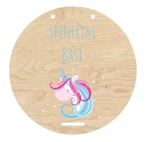 Baza organizera na spinki wykonana ze sklejki z kolorowym nadrukiem. Personalizacja w postaci imienia dziecka. Wystarczy przewiązać wstążkę w ulubionym kolorze, do której będą mocowane spinki, aby w drobiazgach dziecka zapanował porządek :)
