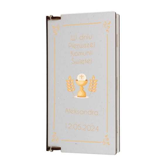 PHDF005-UV Pudełko na banknoty białe kielich na Chrzest, Komunię