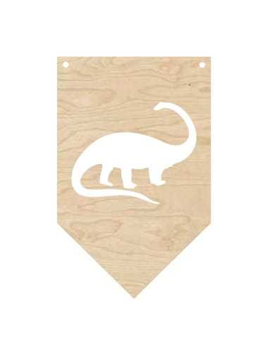 Ozdobny proporczyk ze sklejki z wyciętym dinozaurem, zbierz cały kompet i udekoruj pokój dziecka w ten oryginalny sposób.