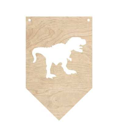 Ozdobny proporczyk ze sklejki z wyciętym dinozaurem, zbierz cały kompet i udekoruj pokój dziecka w ten oryginalny sposób.
