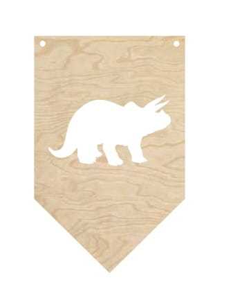 Ozdobny proporczyk ze sklejki z wyciętym dinozaurem, zbierz cały kompet i udekoruj pokój dziecka w ten oryginalny sposób.