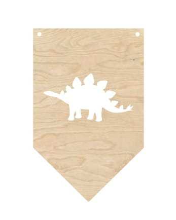 Ozdobny proporczyk ze sklejki z wyciętym dinozaurem, zbierz cały kompet i udekoruj pokój dziecka w ten oryginalny sposób.