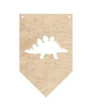 Ozdobny proporczyk ze sklejki z wyciętym dinozaurem, zbierz cały kompet i udekoruj pokój dziecka w ten oryginalny sposób.