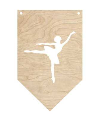 Ozdobny proporczyk ze sklejki z wyciętą sylwetką baletnicy, zbierz cały kompet i udekoruj pokój dziecka w ten oryginalny sposób.