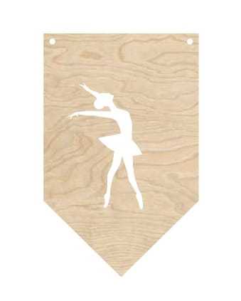 Ozdobny proporczyk ze sklejki z wyciętą sylwetką baletnicy, zbierz cały kompet i udekoruj pokój dziecka w ten oryginalny sposób.