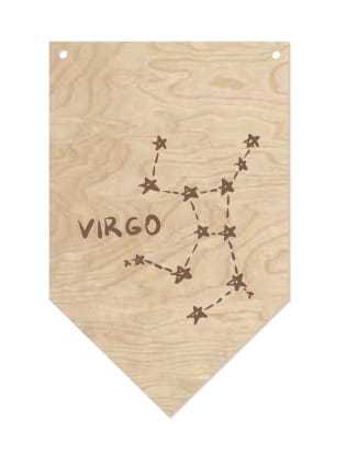 Ozdobny proporczyk ze sklejki z wygrawerowanym gwiazdozbiorem Panny ułatwi odnalezienie układu na nocnym niebie. Skompletuj wszystkie gwiazdozbiory Zodiaku i udekoruj w ten oryginalny sposób swój dom.