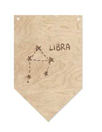 Ozdobny proporczyk ze sklejki z wygrawerowanym gwiazdozbiorem Wagi ułatwi odnalezienie układu na nocnym niebie. Skompletuj wszystkie gwiazdozbiory Zodiaku i udekoruj w ten oryginalny sposób swój dom.