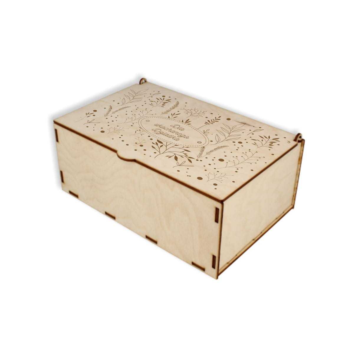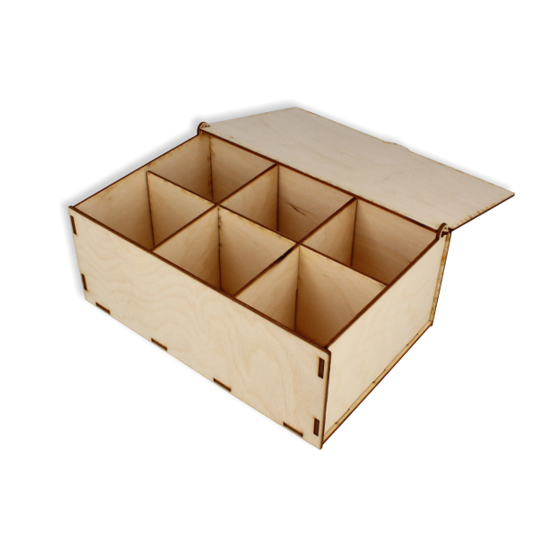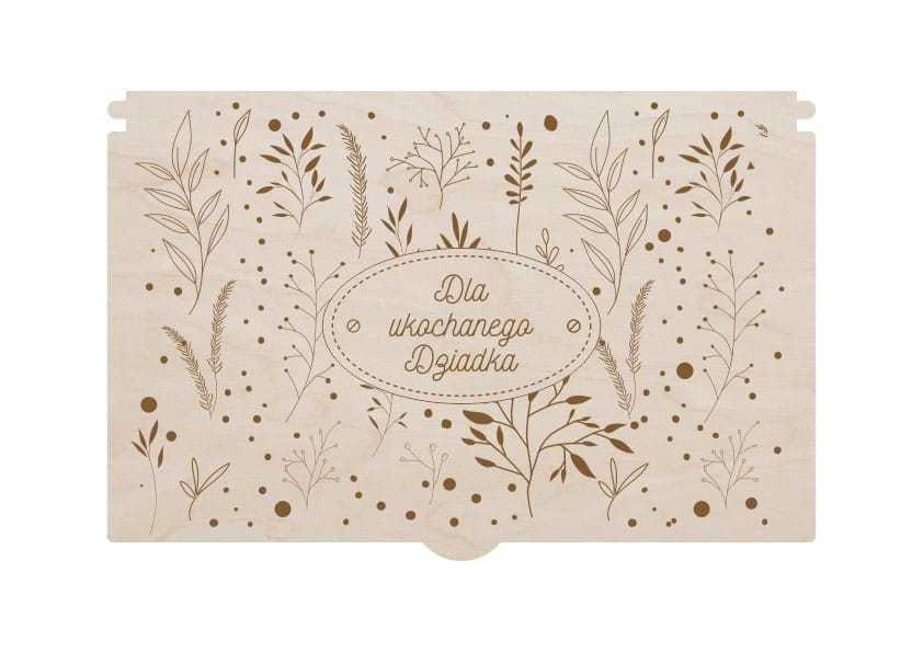 Drewniana herbaciarka z wieczkiem idealnie nadaje się do ozdabiania techniką decoupage. Pudełko składa się z dziewięciu części do samodzielnego montażu. W środku pudełka jest sześć przegródek, w których każdy może ułożyć swoje ulubione smaki herbat. Na wieku herbaciarki wygrawerowane są motywy roślinne i napis "Dla ukochanego Dziadka".