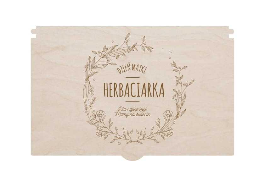 Drewniana herbaciarka z wieczkiem idealnie nadaje się do ozdabiania techniką decoupage. Pudełko składa się z dziewięciu części do samodzielnego montażu. W środku pudełka jest sześć przegródek, w których każdy może ułożyć swoje ulubione smaki herbat. Na wieku herbaciarki wygrawerowane są motywy roślinne i napis "Dzień Matki. Herbaciarka. Dla najlepszej Mamy na świecie".