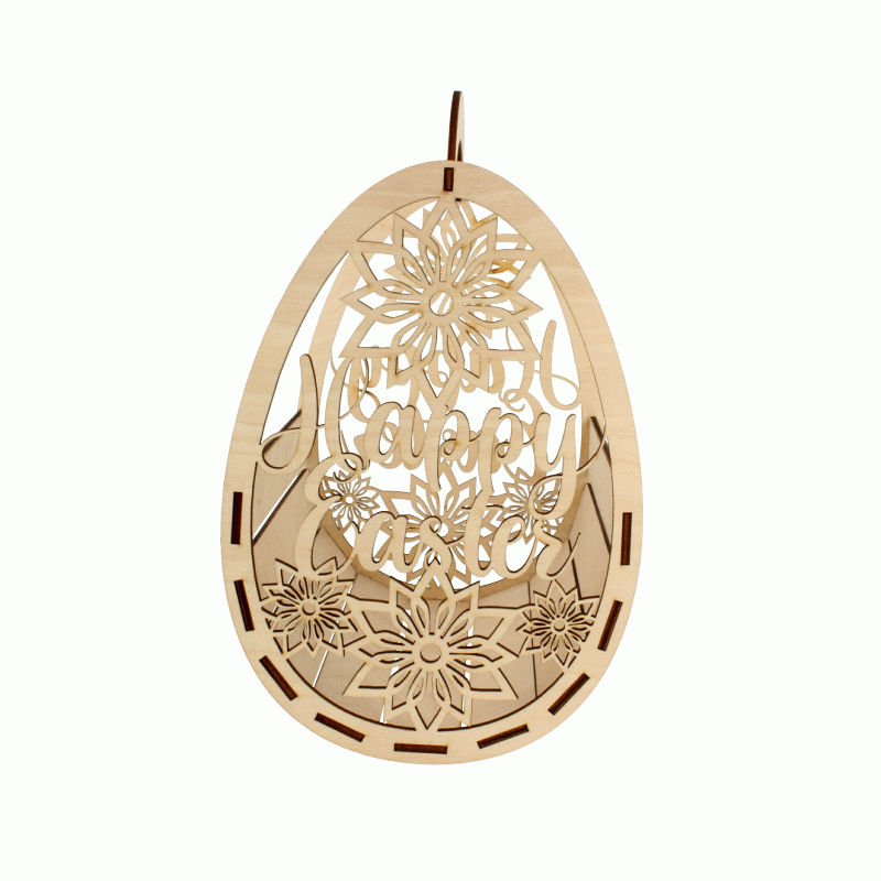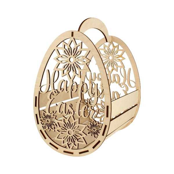 Trójwymiarowy koszyk ze sklejki z motywem wielkanocnym do samodzielnego złożenia.
