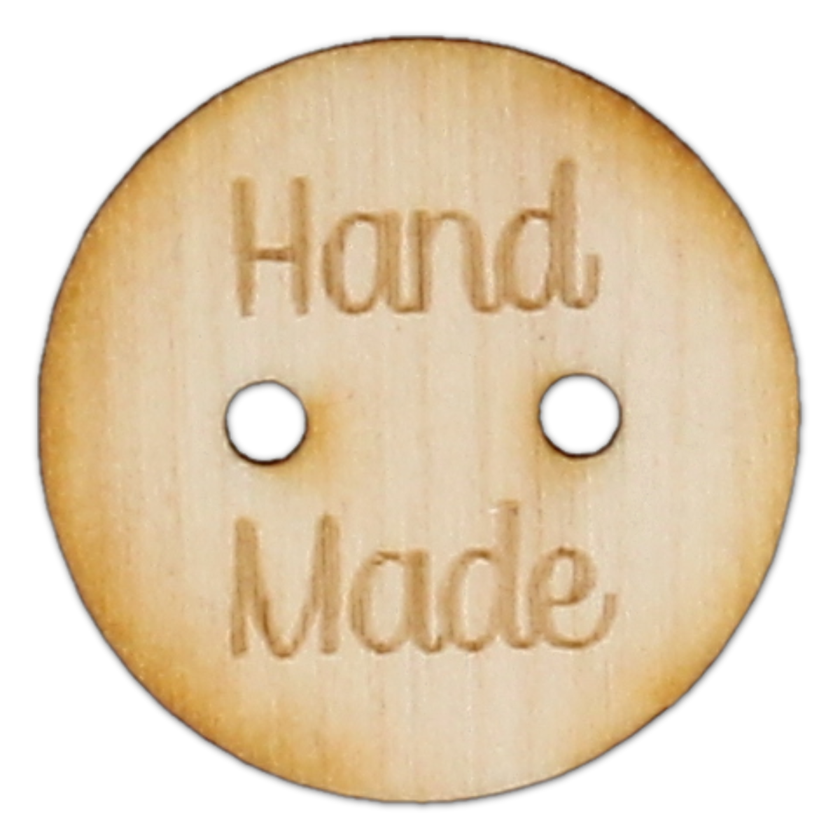 Scrapki guziczki z wygrawerowanym napisem HAND MADE wykonane ze sklejki o grubości 3mm.
