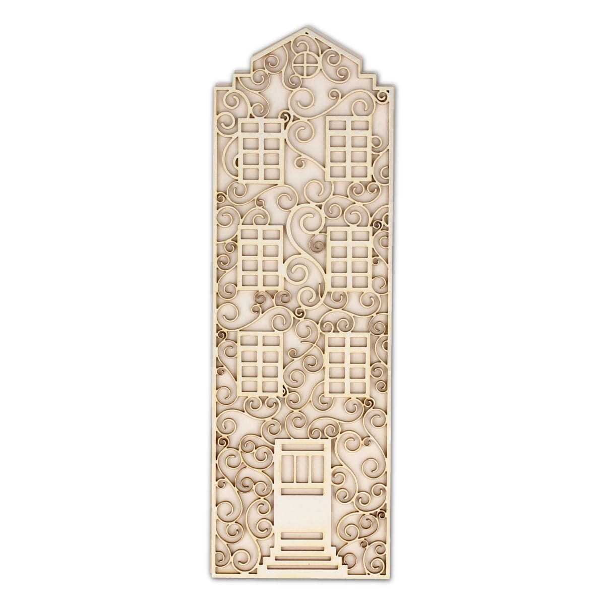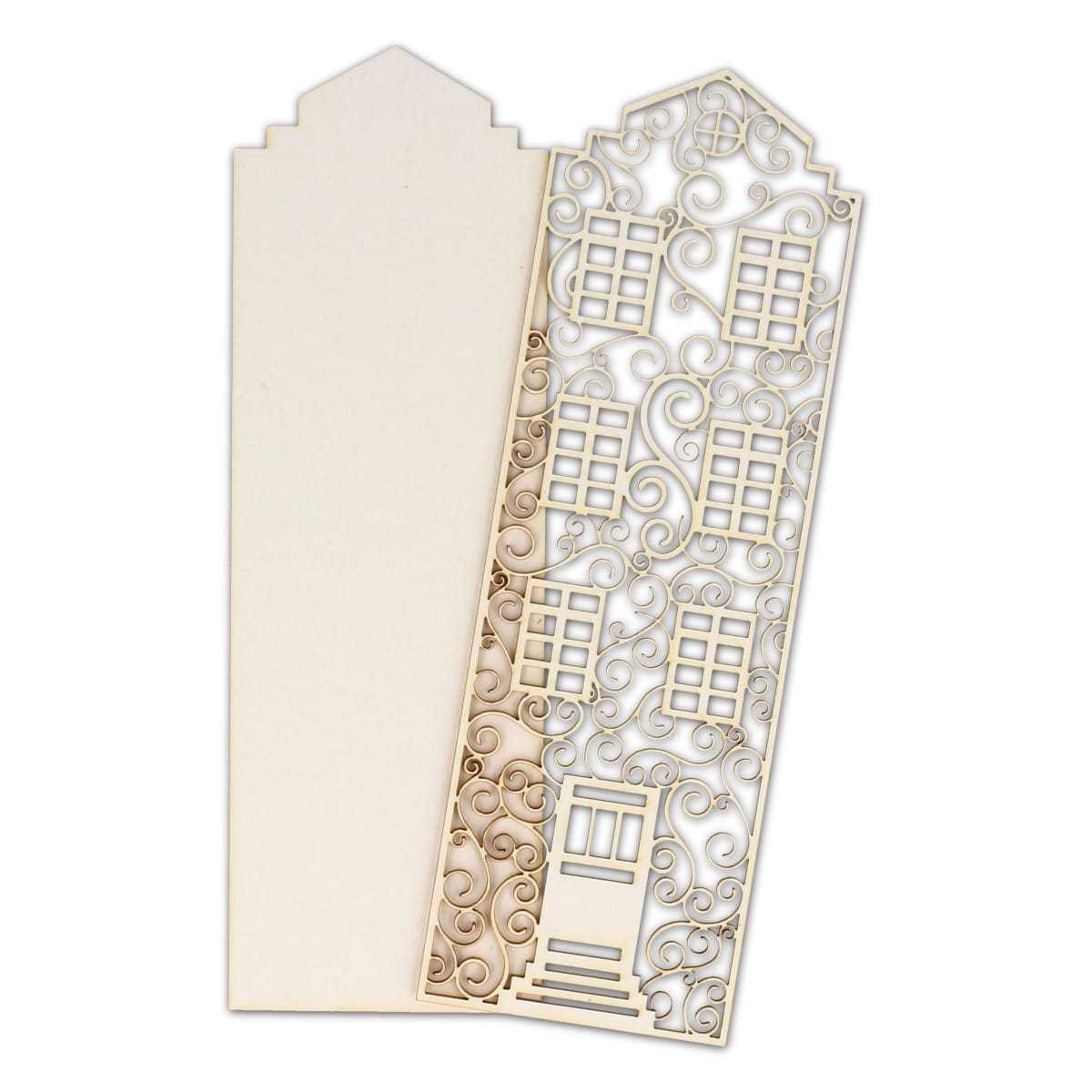 Dwuczęściowa, ażurowa kamieniczka z kartonu.