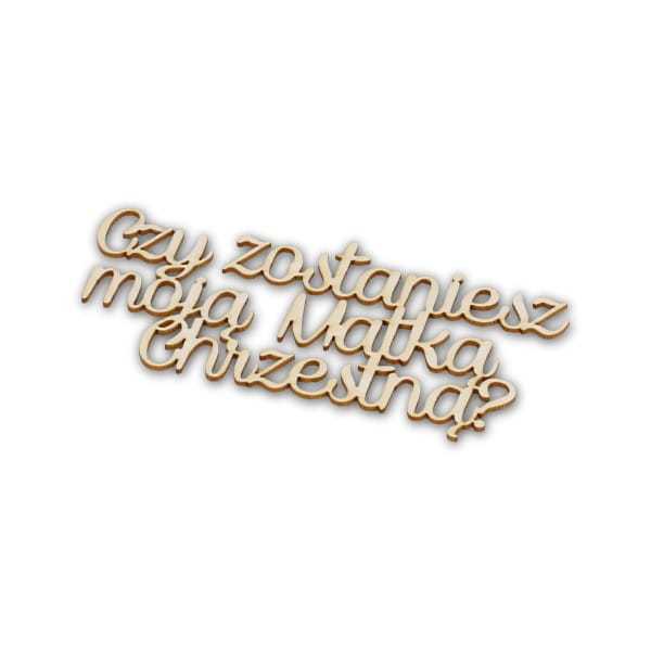 Ozdobny napis "Czy zostaniesz moją Matką Chrzestną?" wykonany z kartonu do zdobienia zaproszeń, kartek lub albumów technikami decoupage i scrapbooking.