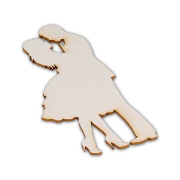 Dekor wykonany z kartonu przedstawiający przytulonych do siebie zakochanych. Ozdobi zaproszenie lub kartkę ślubną.